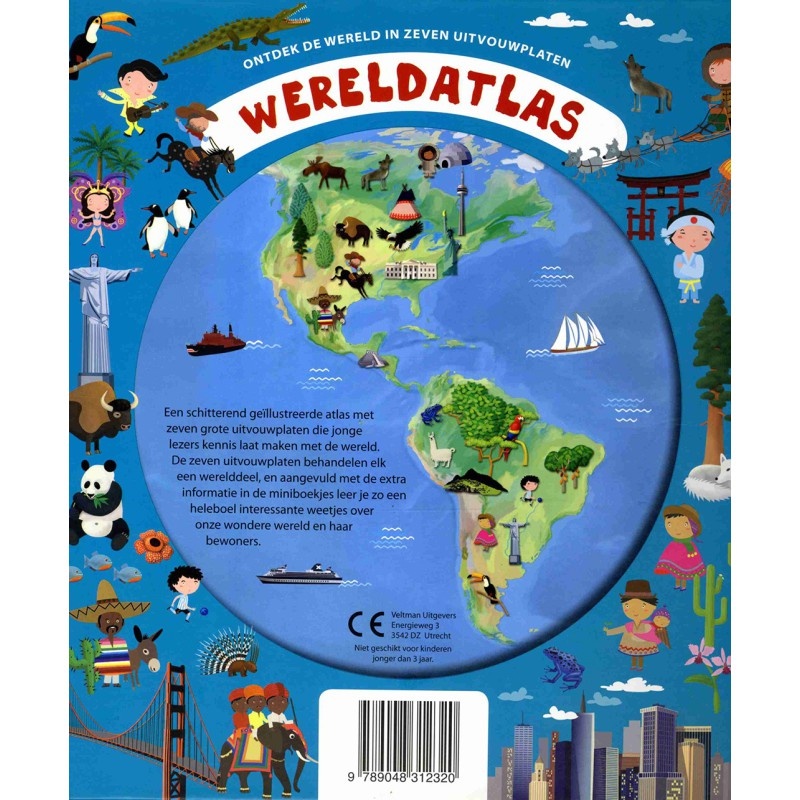 Een schitterend geilustreerde atlas met zeven grote uitvouwplaten die jonge lezers kennis laat maken met de wereld. Elke uitbouwplaat behandeld een werelddeel, zo leer je een heleboel interessante weetjes over onze wondere wereld en haar inwoners.