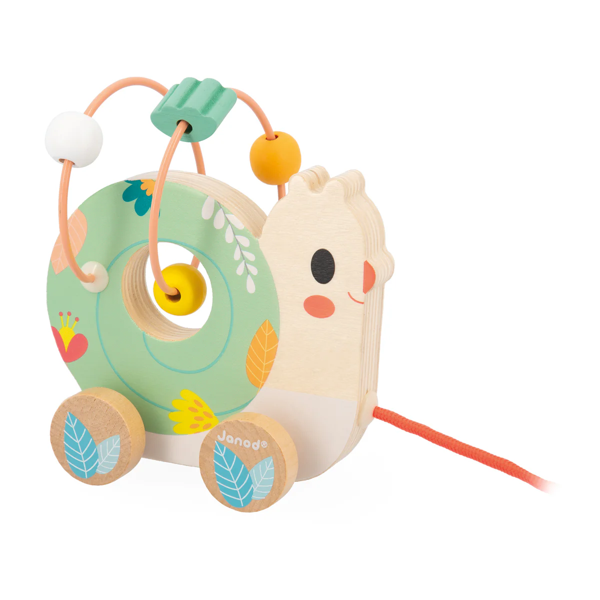 Dit trekfiguurtje heeft een metalen looping met 4 kralen. Gebruik het koord om het slakje overal mee naartoe te trekken, ideaal voor het ontwikkelen van fijne en grove motoriek. Afmetingen: slak 13 x 6,4 x 13,4 cm, voor kinderen vanaf 12 maanden.