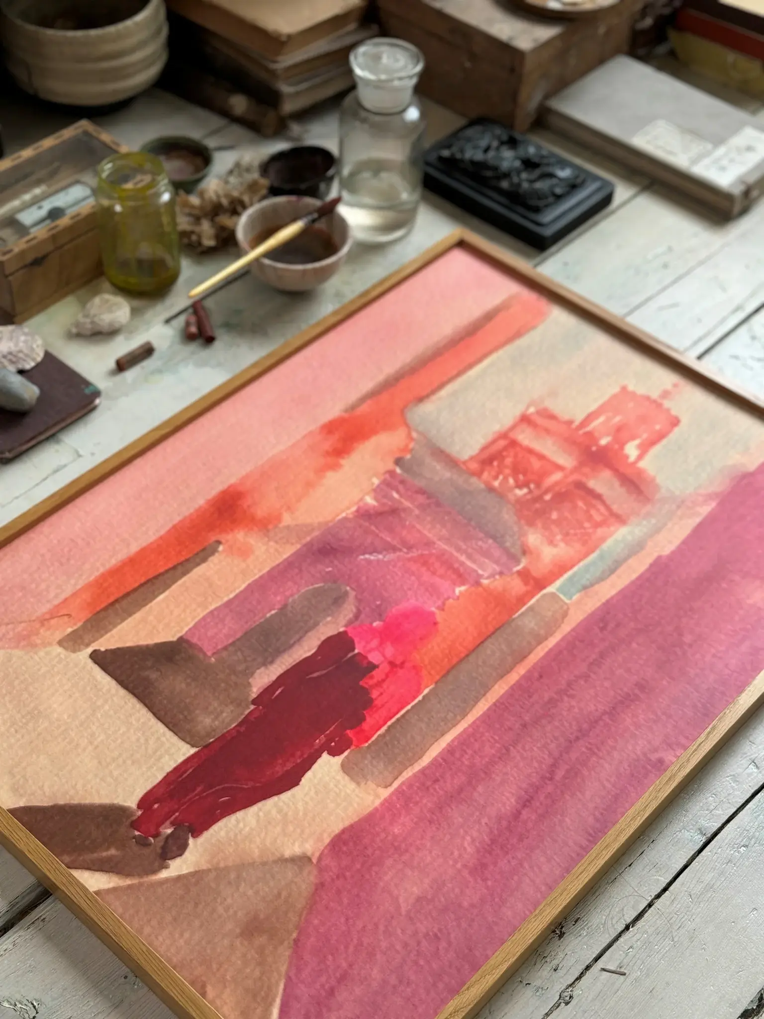 Kunstprint. Het originele schilderij is geschilderd op vintage papier. Deze kunstprint is een prachtige kwaliteitsreproductie. Afmeting: 30cm x 40cm.