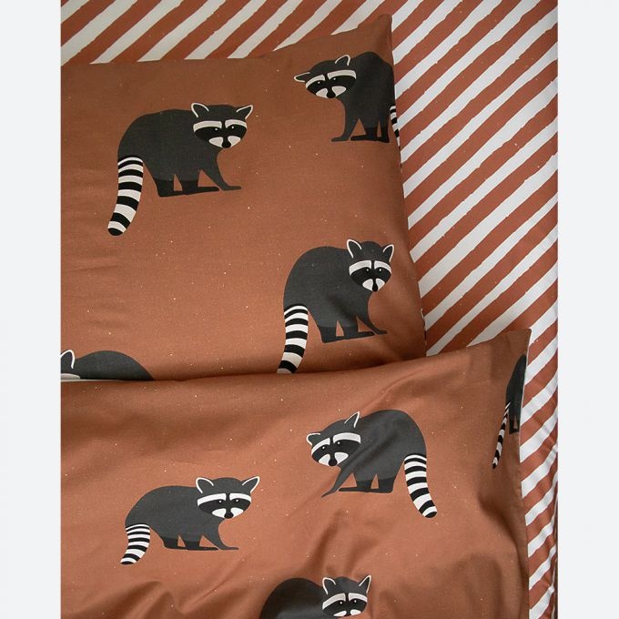 Hoeslaken met roestbruine strepen. Goed te combineren met de dekbedovertrekken van Studio Ditte. Elastiek in de hoeken zorgt ervoor dat de hoes mooi aansluit op het matras. Materiaal 100% katoen OEKO-TEX gecertificeerd. Afmetingen 90 x 200 cm.
