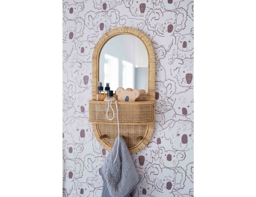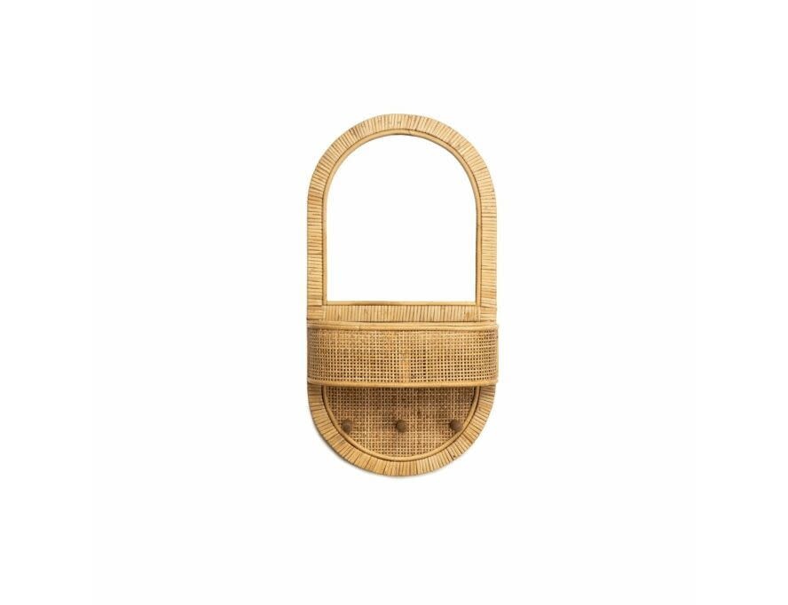 Elegant rotan wandrekje met een spiegel, bakje en haakjes. Afmeting W32xD10xH60cm