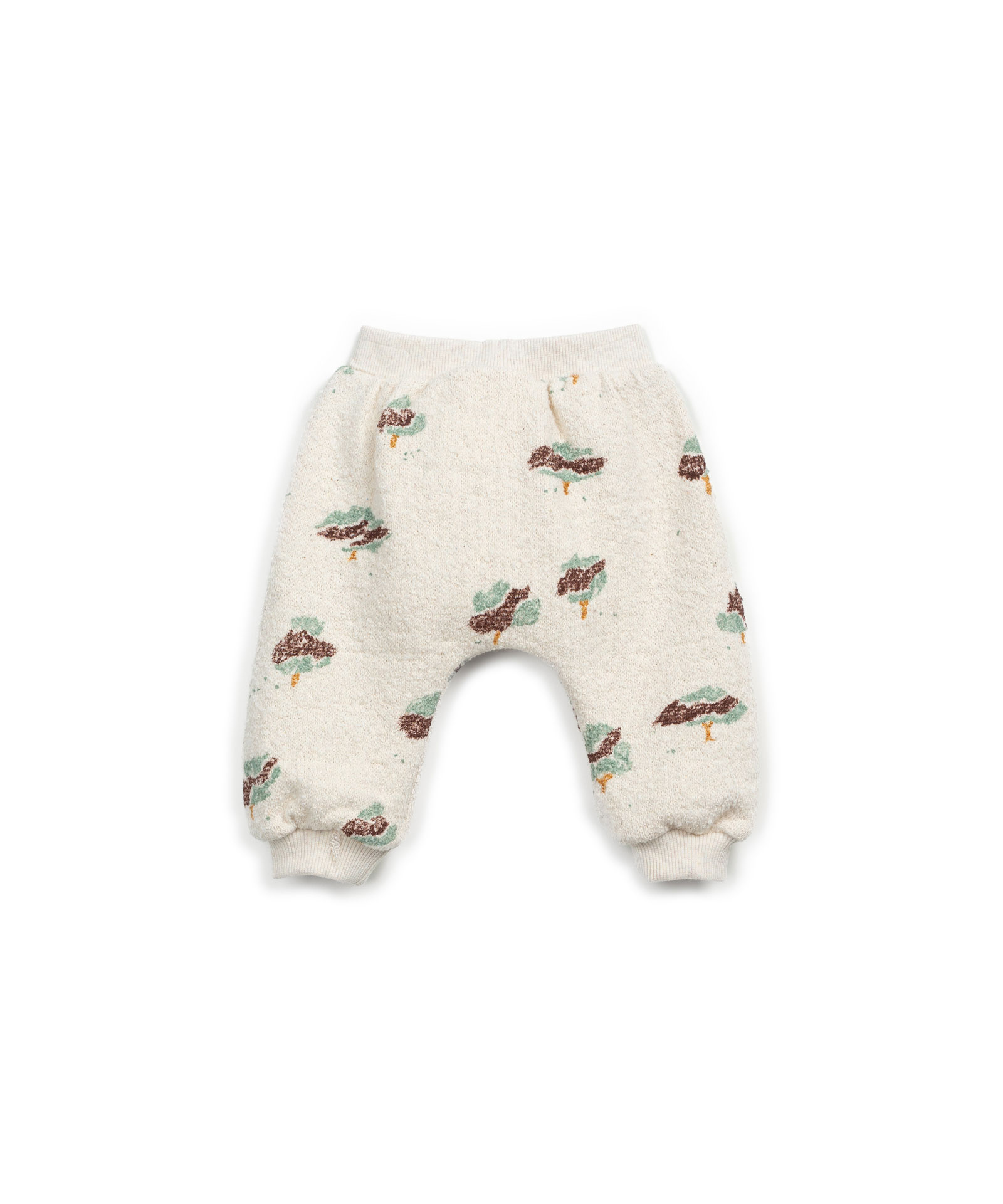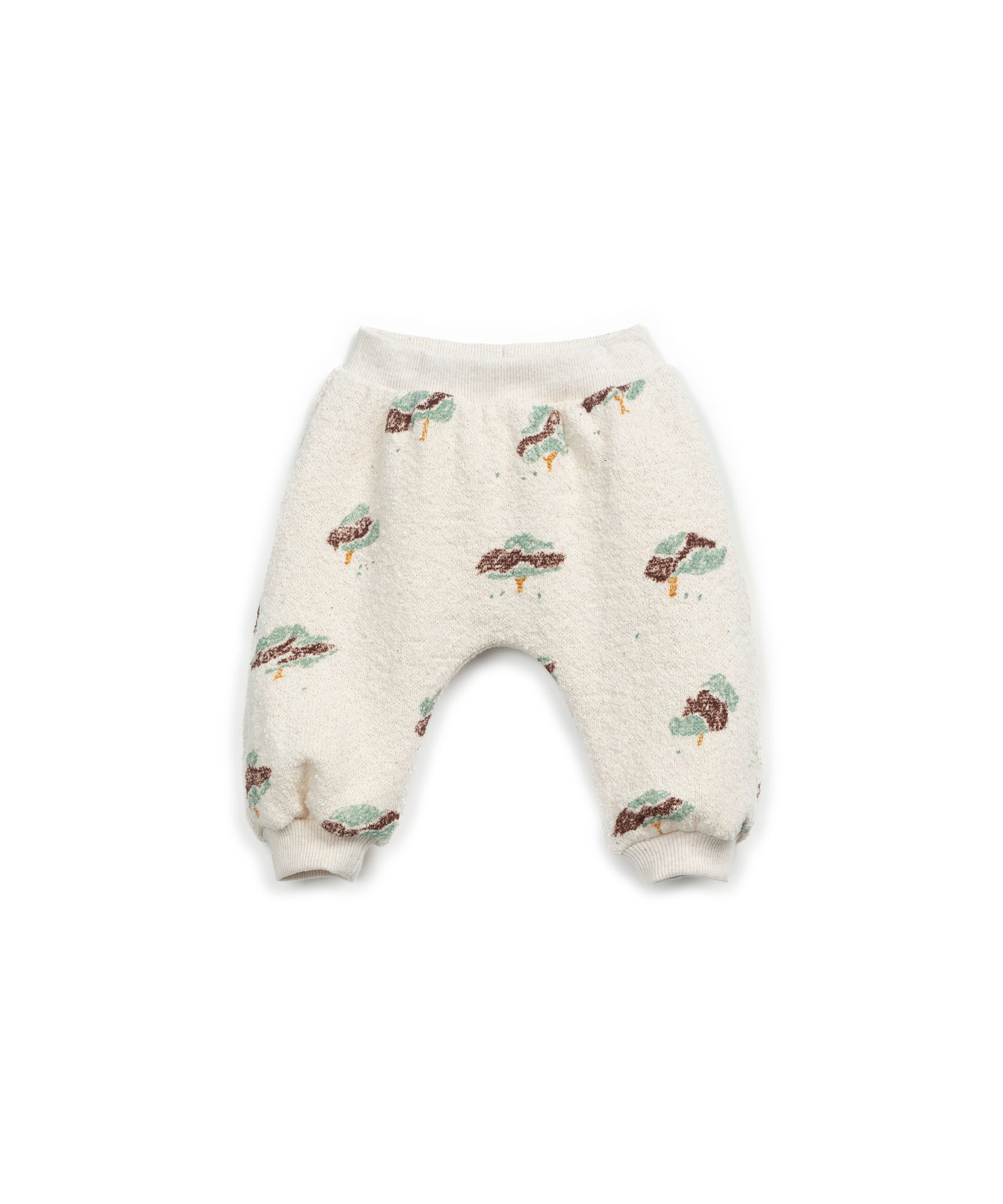 Comfortabel beige printed jersey trousers met een all over print van boompjes. Materiaal: 58% organisch katoen, 36% regeneratief katoen en 4% andere materialen.