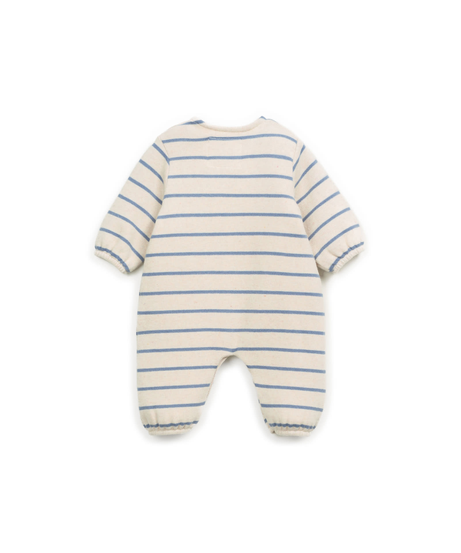 De heerlijk zachte striped flame jersey heeft elastiekjes bij de polsjes en enkeltjes en een zakje op de buik. Op de schouder zit een houten knoopje voor het makkelijk aan en uittrekken.