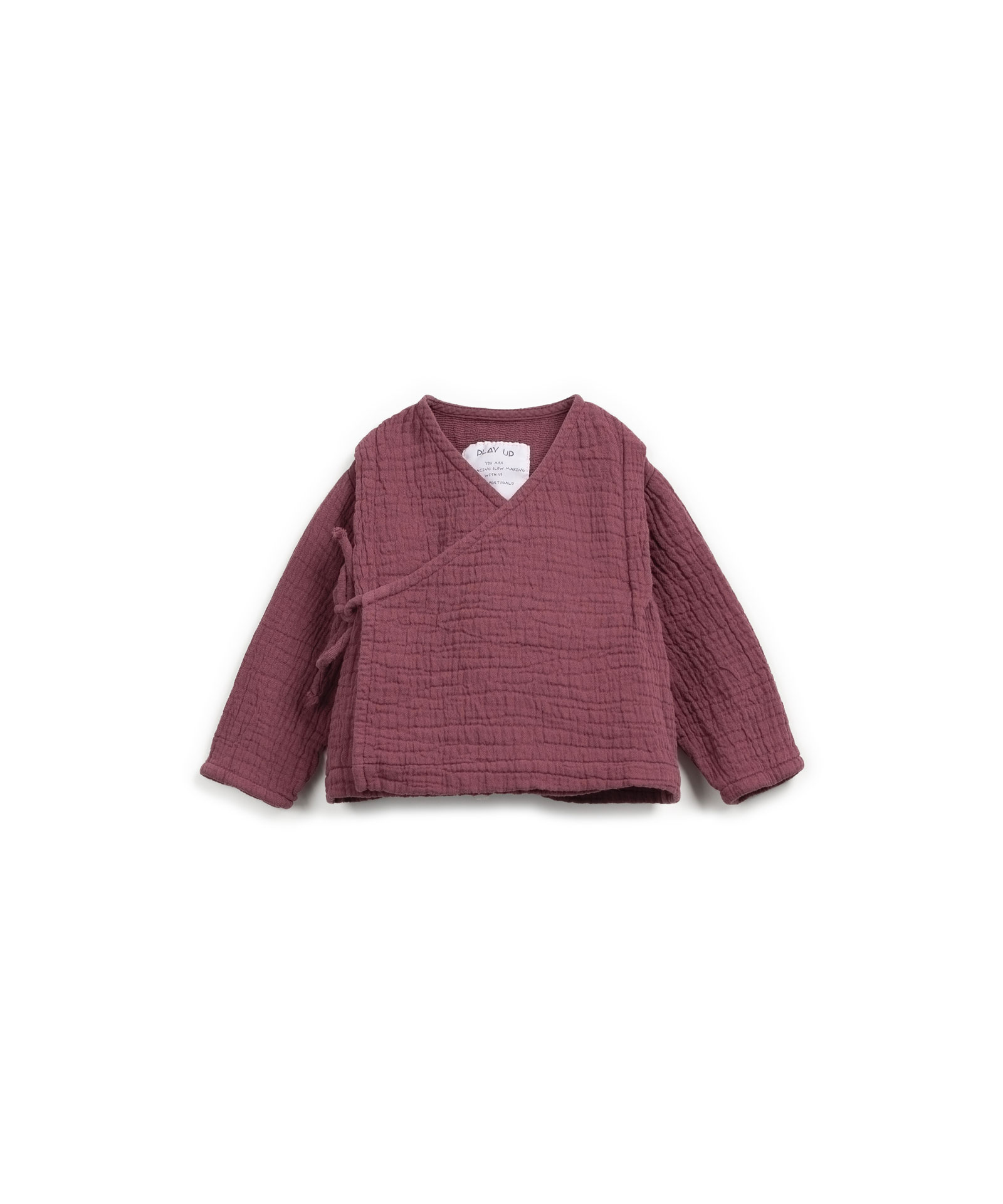 Het comfortabele overslag vestjevan Play up Woven shirt heeft een bordeaux rode/ pruim kleur. Materiaal 100% katoen.